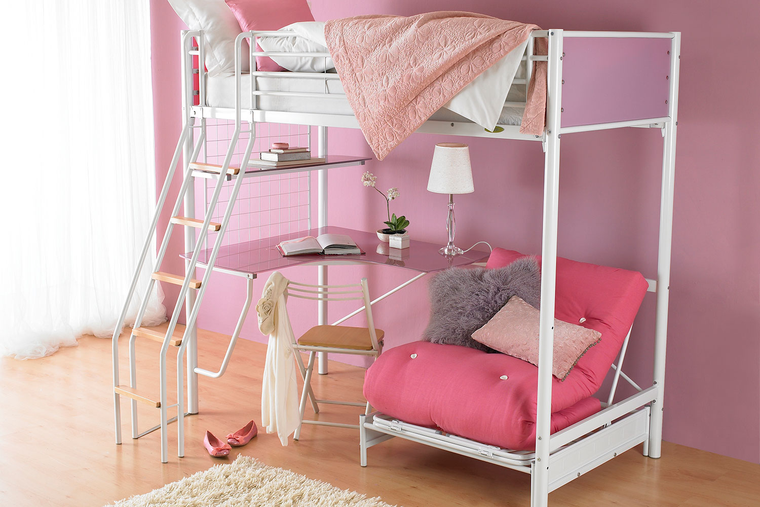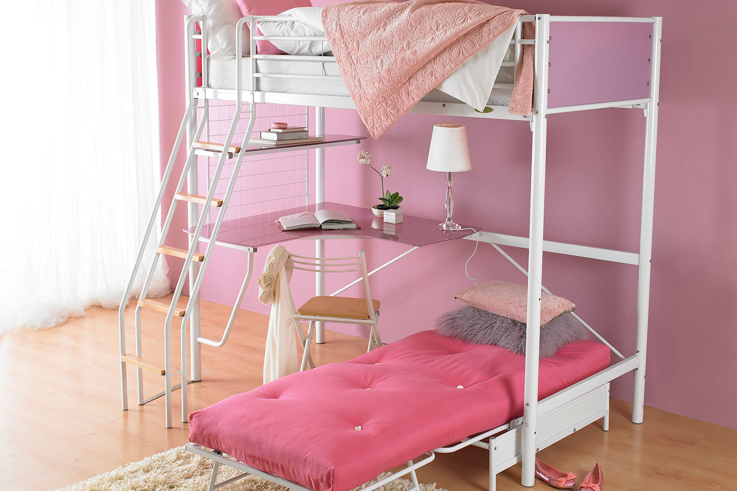 Hyder Cosmic Pink & White Bunk Bed with Futon
